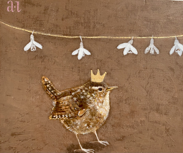 Dag 4 van het project a painting a day ! Winterkoning en sneeuwklokjes