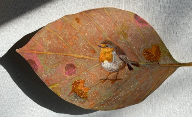 voor roodborst op beukenblad